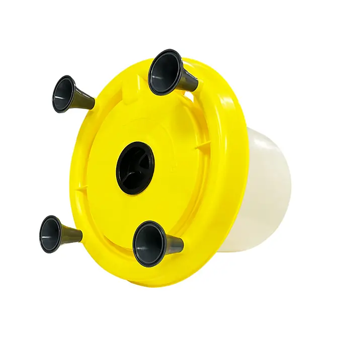 L’abbeveratoio a sifone da 15L con manico e piatto con tappo è composto dalle seguenti componenti: