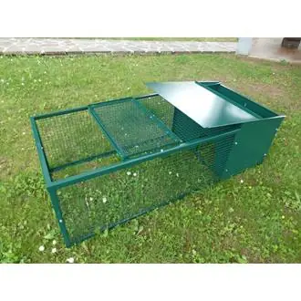 Porta a battente sopra l’area esterna rivestita con rete, il tutto senza fondo. Casetta con tetto scorrevole e passaggio per l’area esterna. Facile da ispezionare e pulire al suo interno.