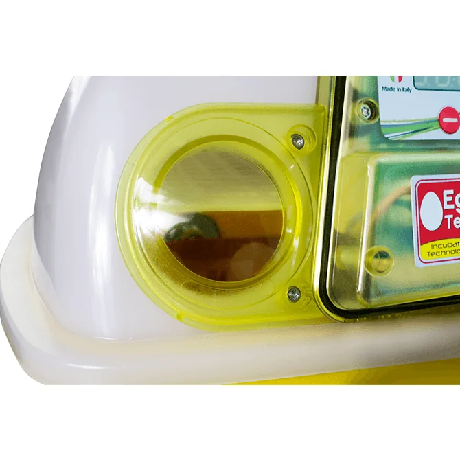 É dotata di oblò di ispezione, vassoio basculante dove mettere le uova, griglia per la schiusa, bocchette esterne per il riempimento delle vaschette dell’acqua e display digitale per premettere di regolare temperatura semplicemente premendo i tasti + e -.