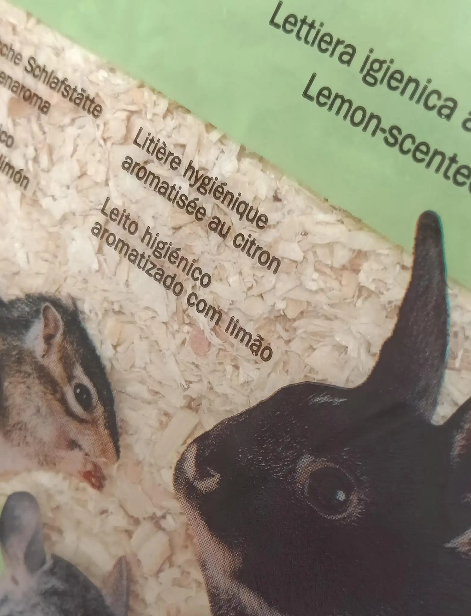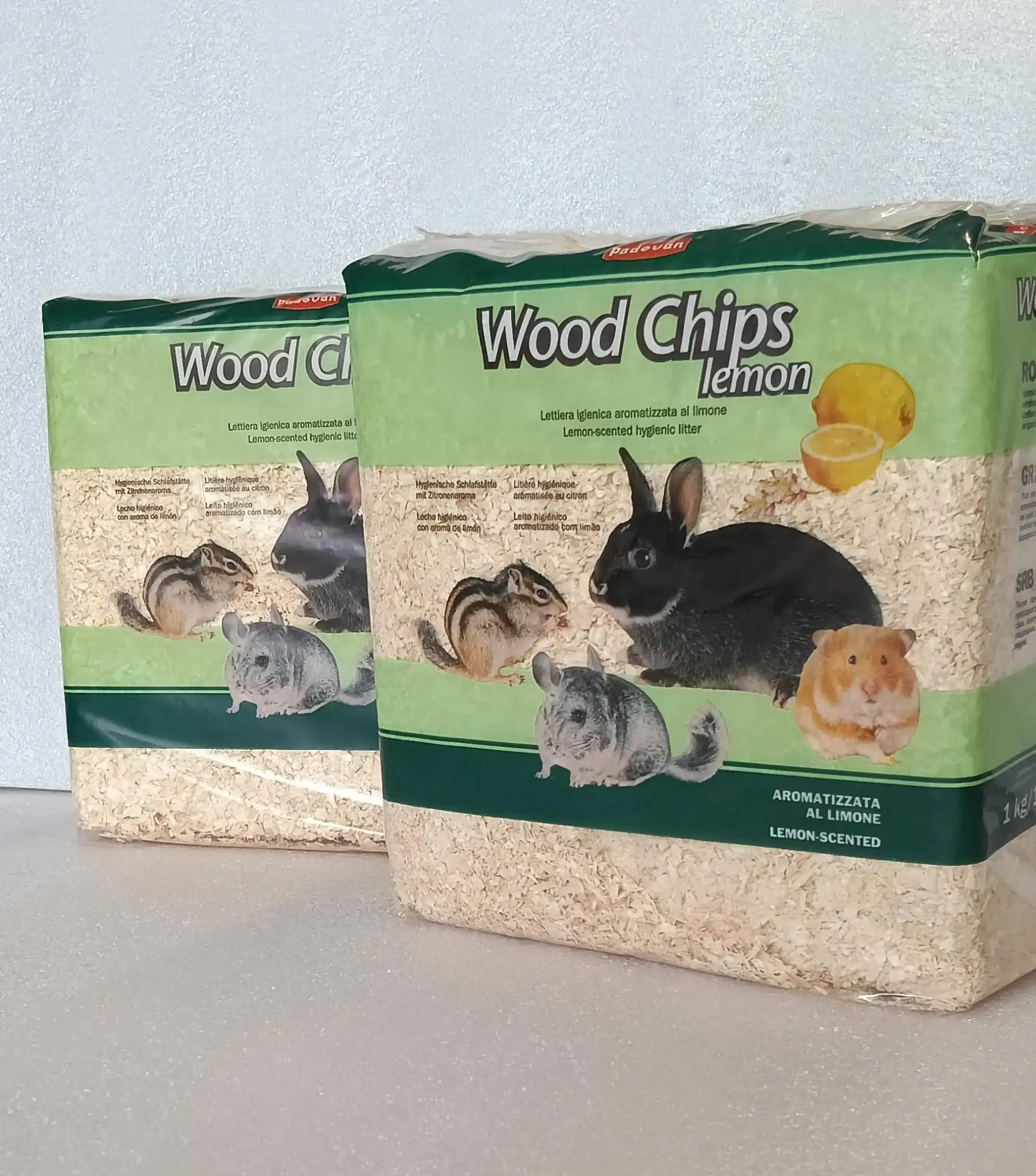 WOODCHIPS LEMON: E una lettiera igienica aromatizzata al limone, costituita da trucioli di legno dolce non trattato (Abete rosso), depolverati ed essiccati, che oltre ad assicurare igiene e comfort a tutti i tipi di roditori, libera un fresco e gradevole profumo di limone.