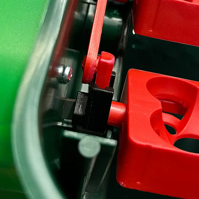 - Giunto in plastica: supporta e guida il vassoio portauova durante l’oscillazione per garantire una durata nel tempo ed un migliore accoppiamento con OVOLVO;