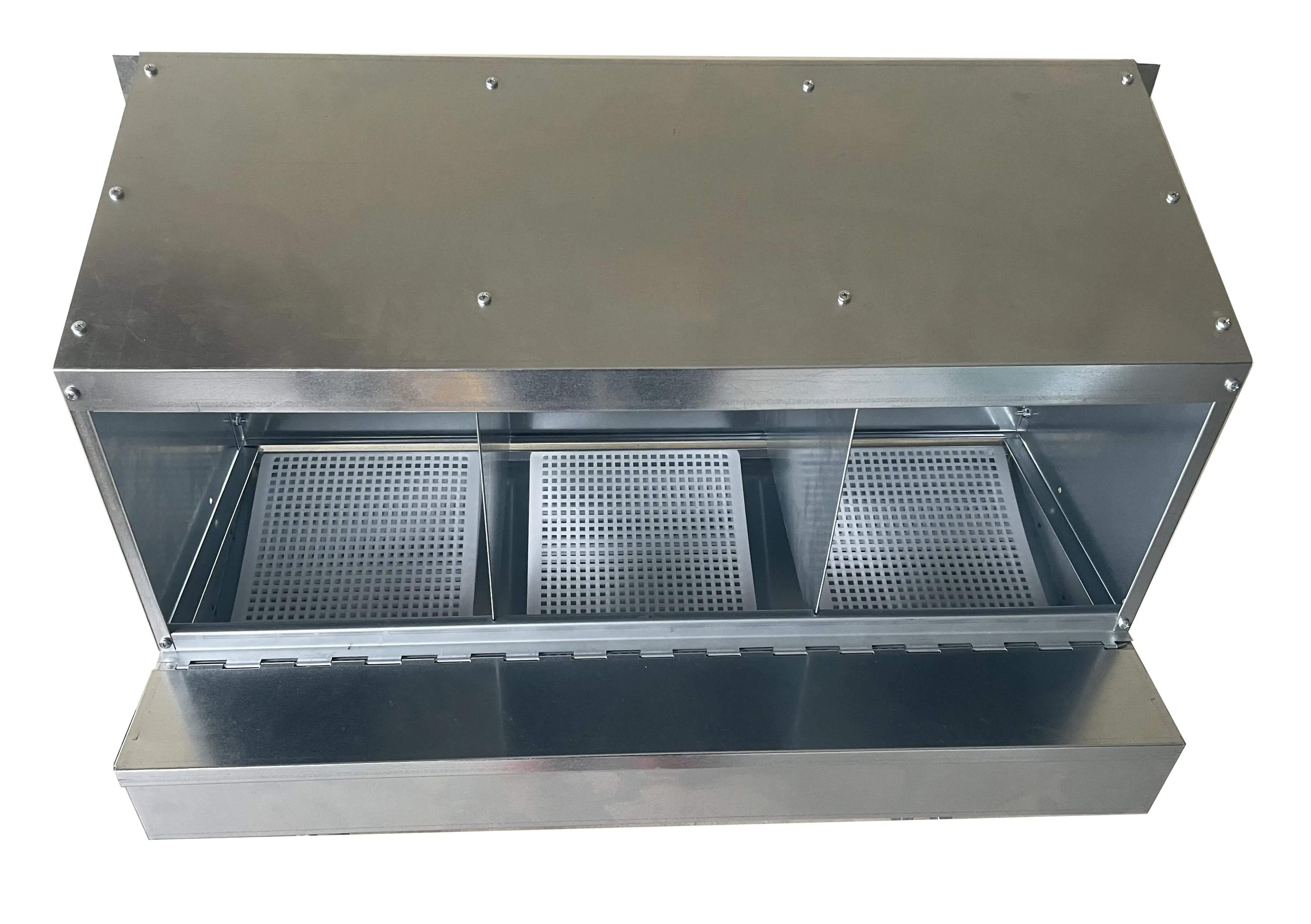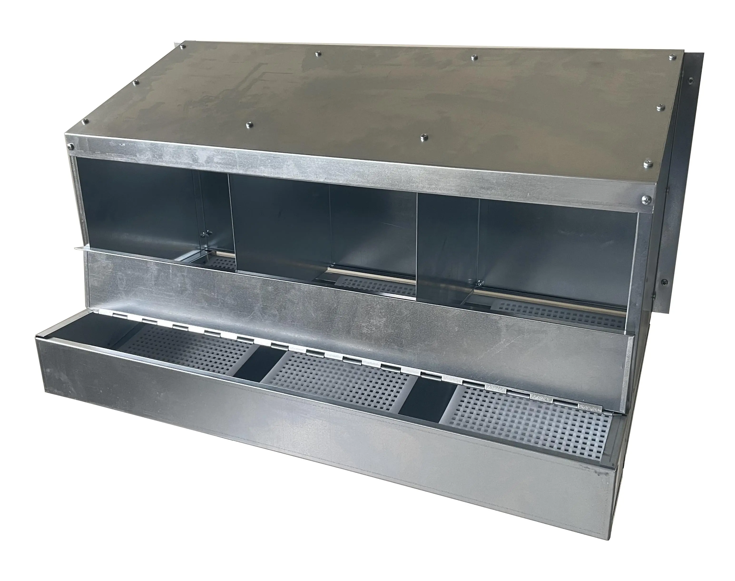 Nido in acciaio per le galline, può ospitare fino a 3 animale alla volta con cassetto uova frontale . Pratico e facile da usare e pulire.