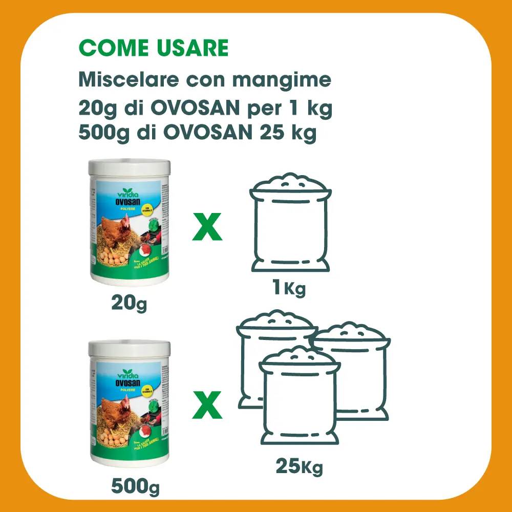 Dosi e modalità di impiego: miscelare accuratamente al 2% (20g ogni 1Kg di mangime completo), in associazione a cereali e farine proteiche per costituire un mangime completo, per 3-4 giorni consecutivi.