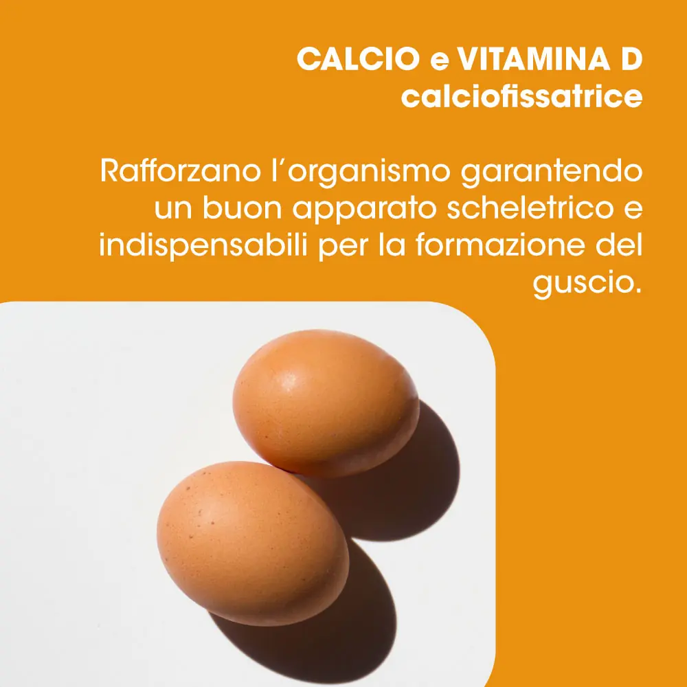 Carbonato di calcio – destrosio – prodotti ottenuti dalla trasformazione di erbe (Ortica-Ortica Dioica- Foglie polvere) 5% – prodotti ottenuti dalla trasformazione di vegetali (Paprica dolce-Capsicum anuum L. Var. Grossum- Frutti polvere) 0,4%