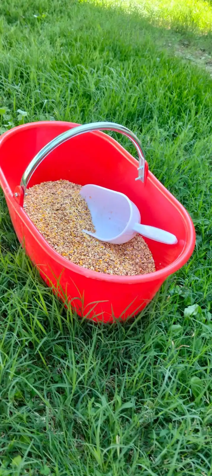 Comodo e pratico per gestire e distribuire il mangime in modo veloce e ordinato.