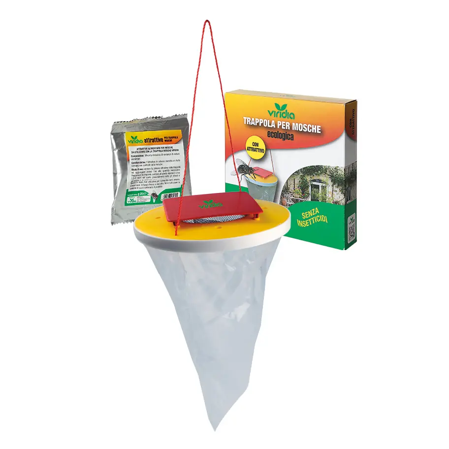 Particolarmente indicato per stalle, pollai, canili e qualsiasi luogo infestato da mosche. All’esterno apporre la trappola all’ombra.